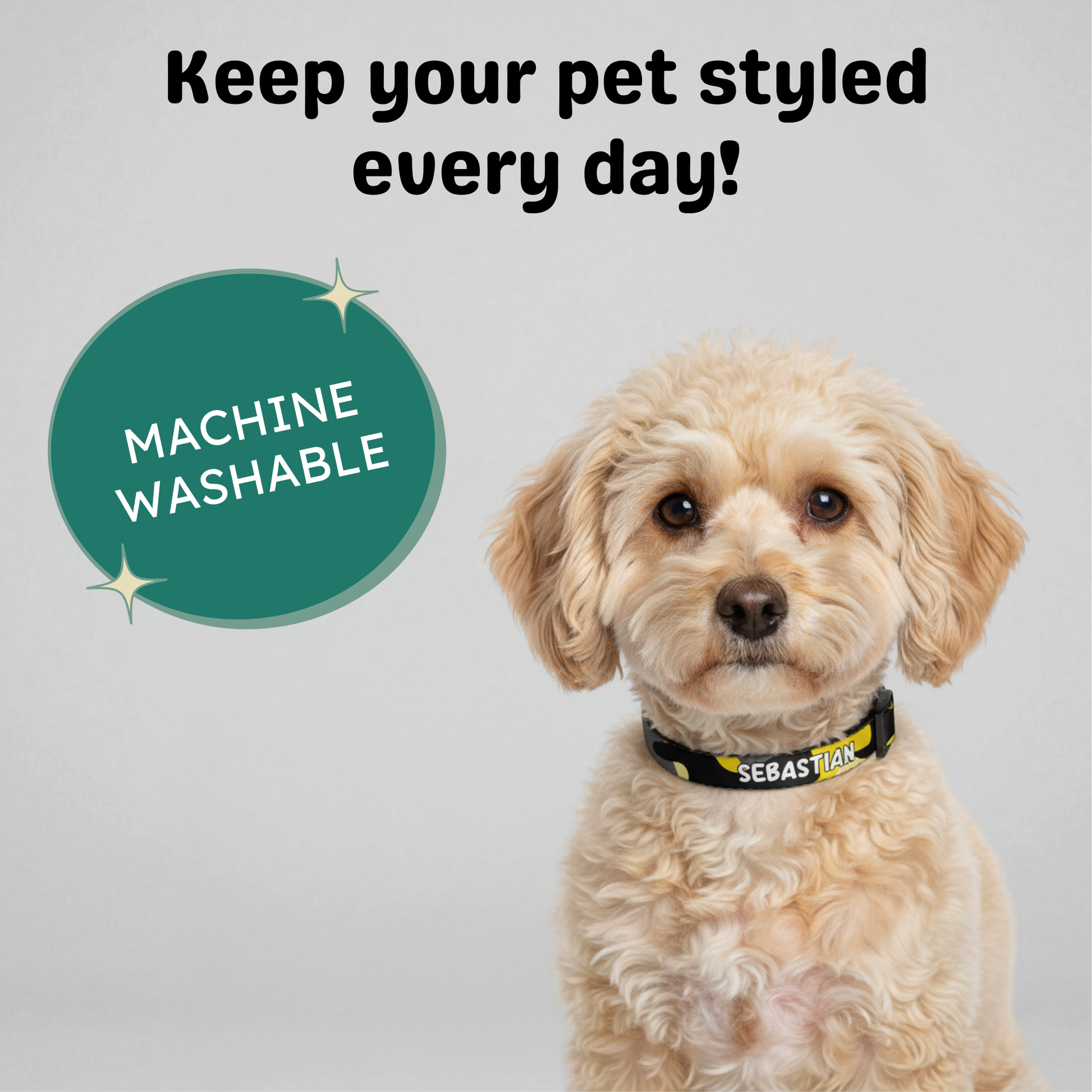 Made from durable, heavy-duty black nylon webbing, these collars are machine-washable. Available in small, medium, and large sizes, they come with sturdy plastic hardware and a metal D-ring for attaching ID tags or a leash. Perfect for dog and cat owners who want their pets to stand out while ensuring their safety. Warning: Not suitable for dogs that twist or pull.