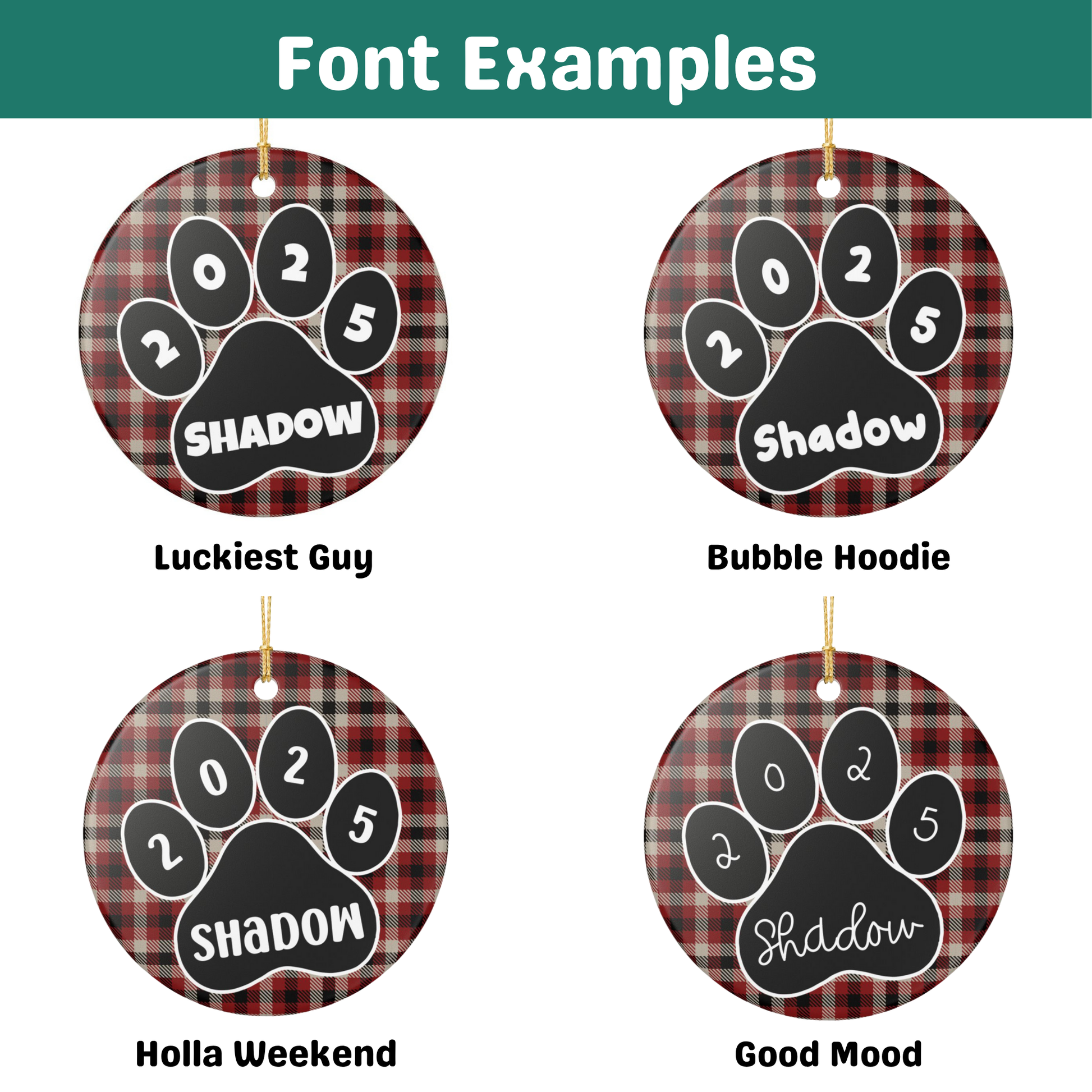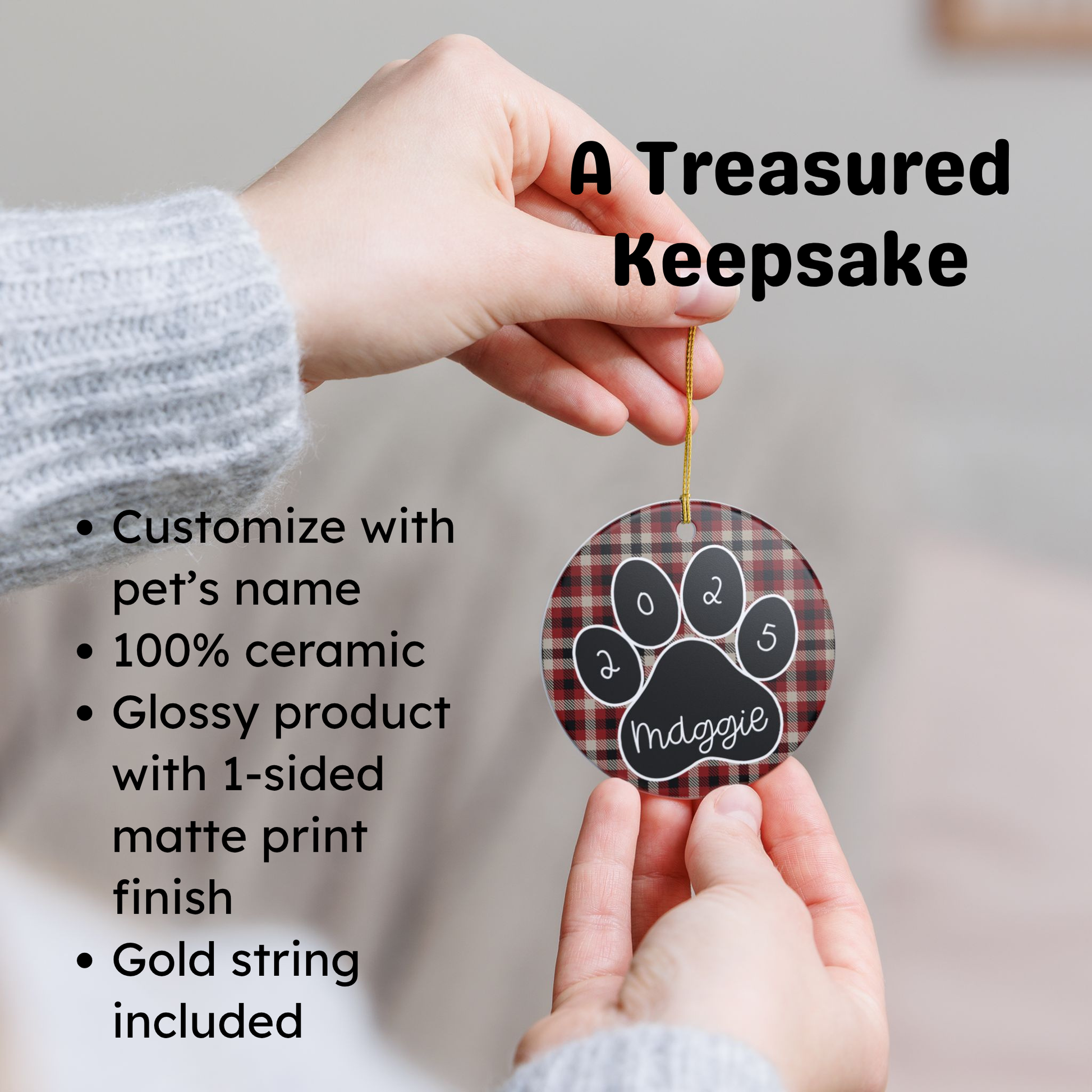 Custom Pet Name Ornament - Crimson & Black Tartan 2025