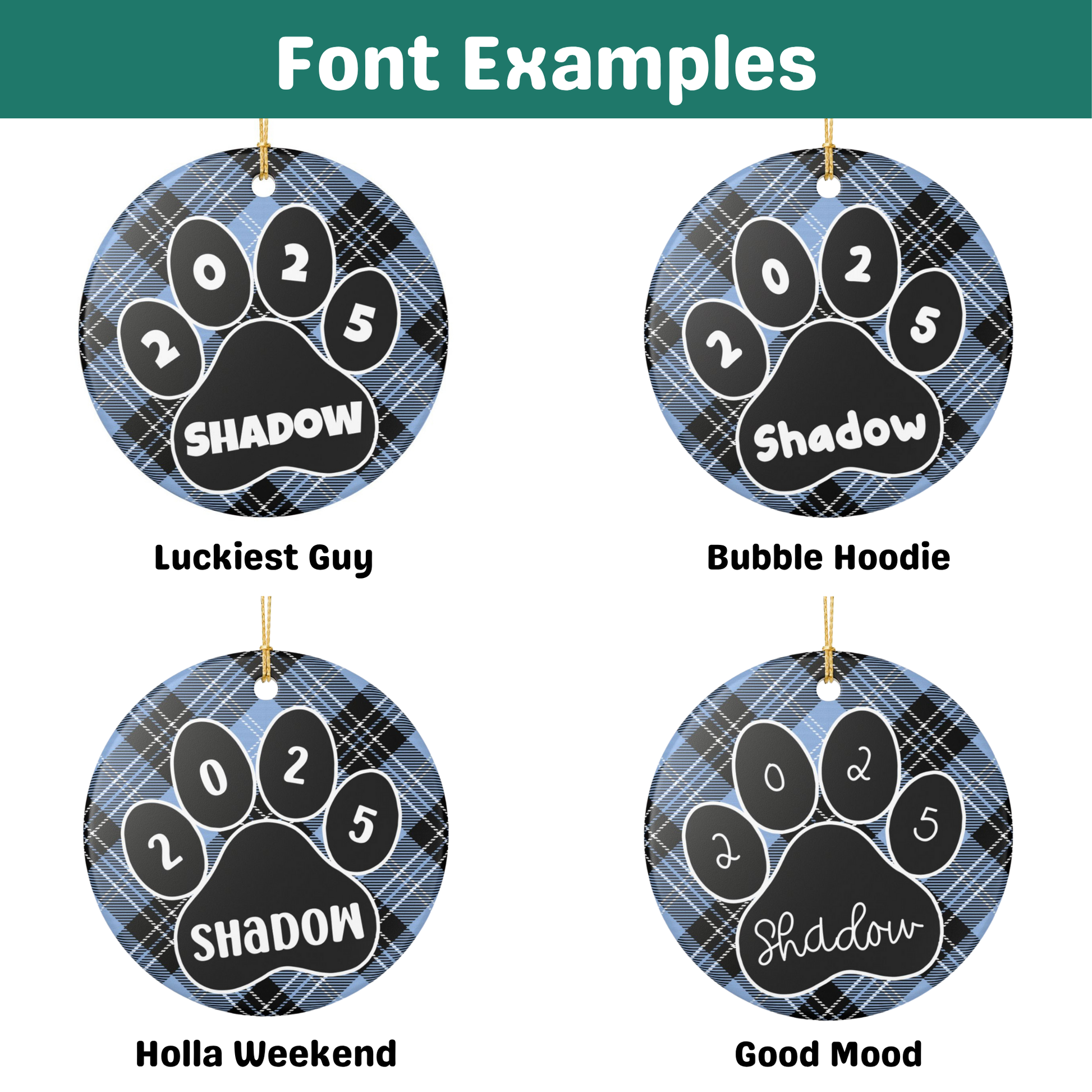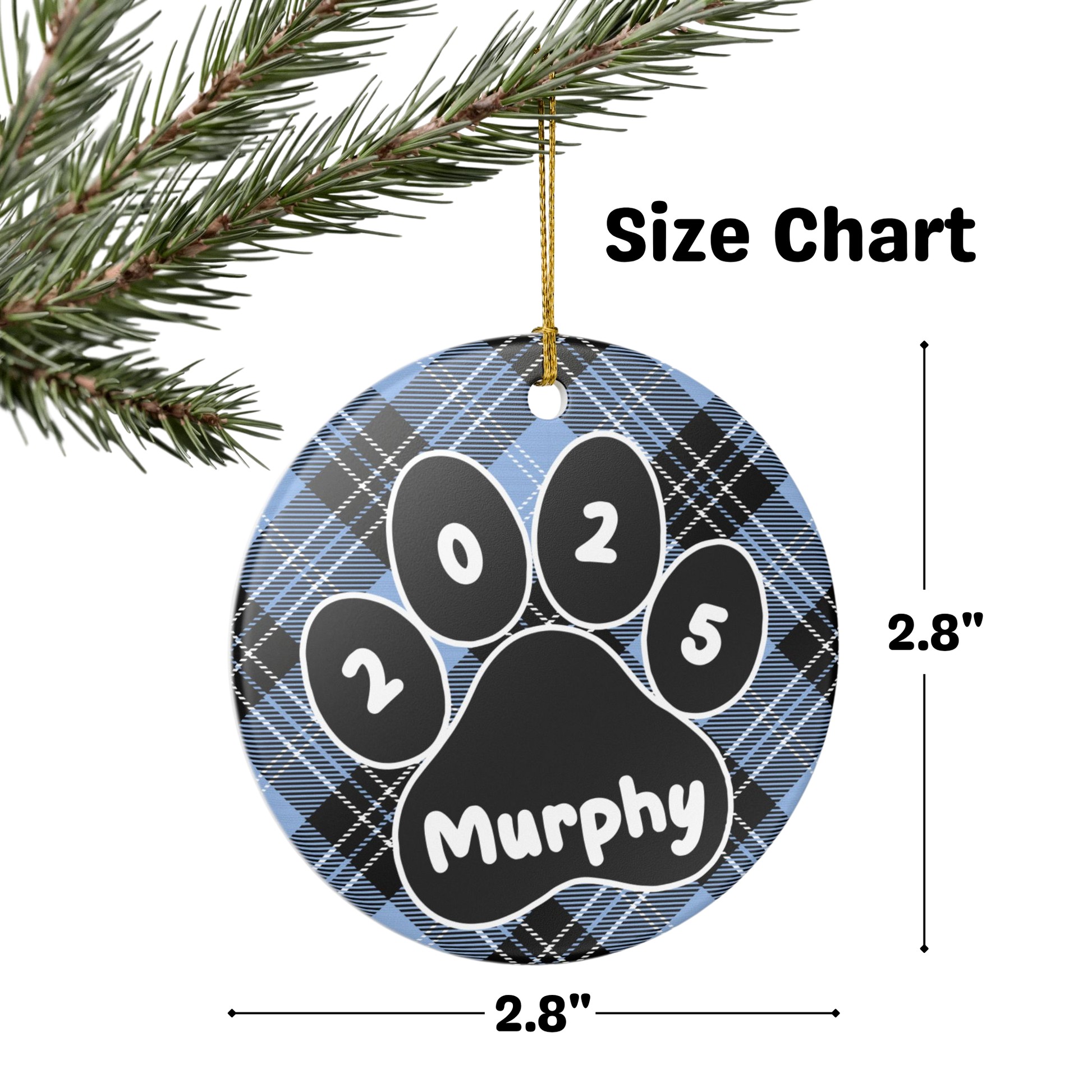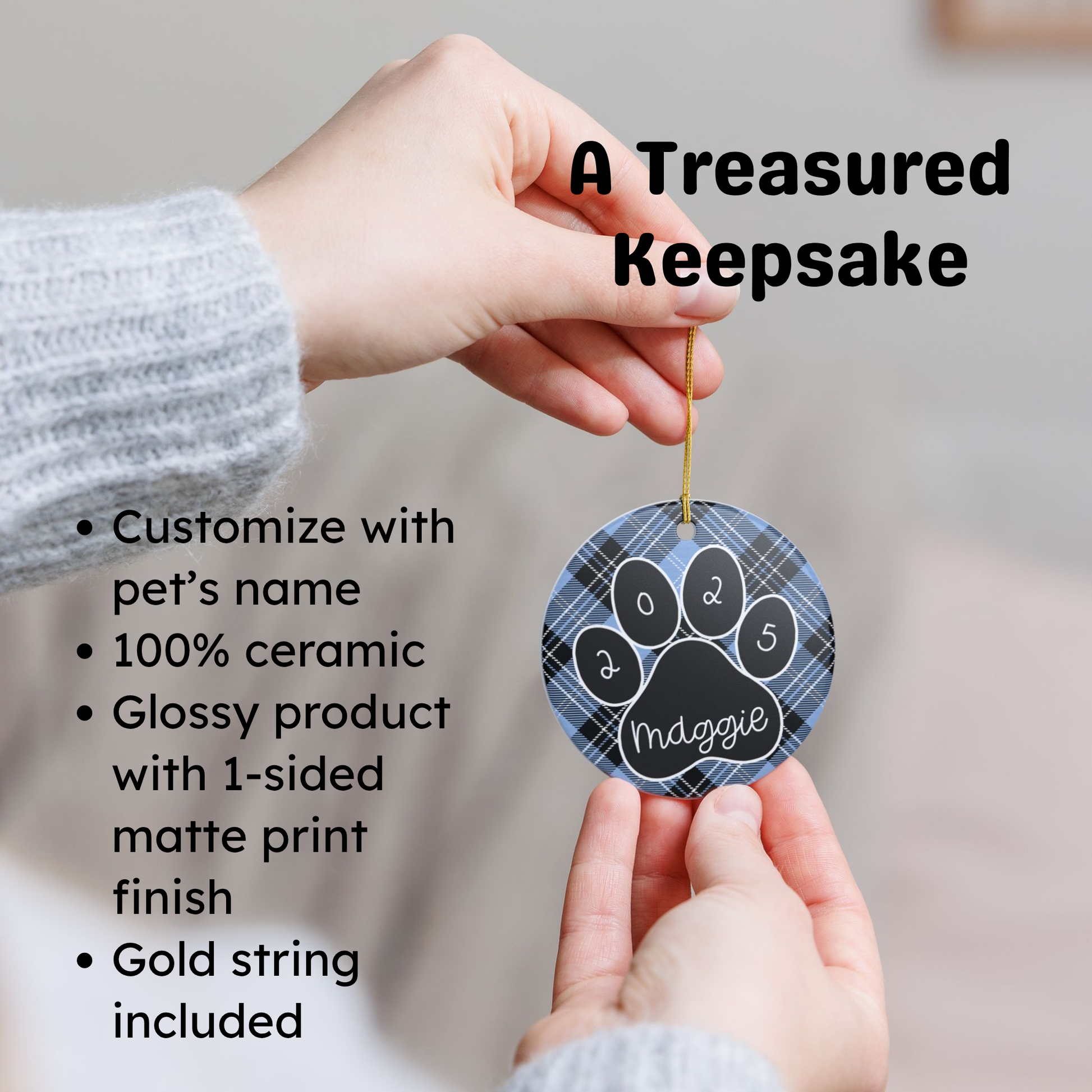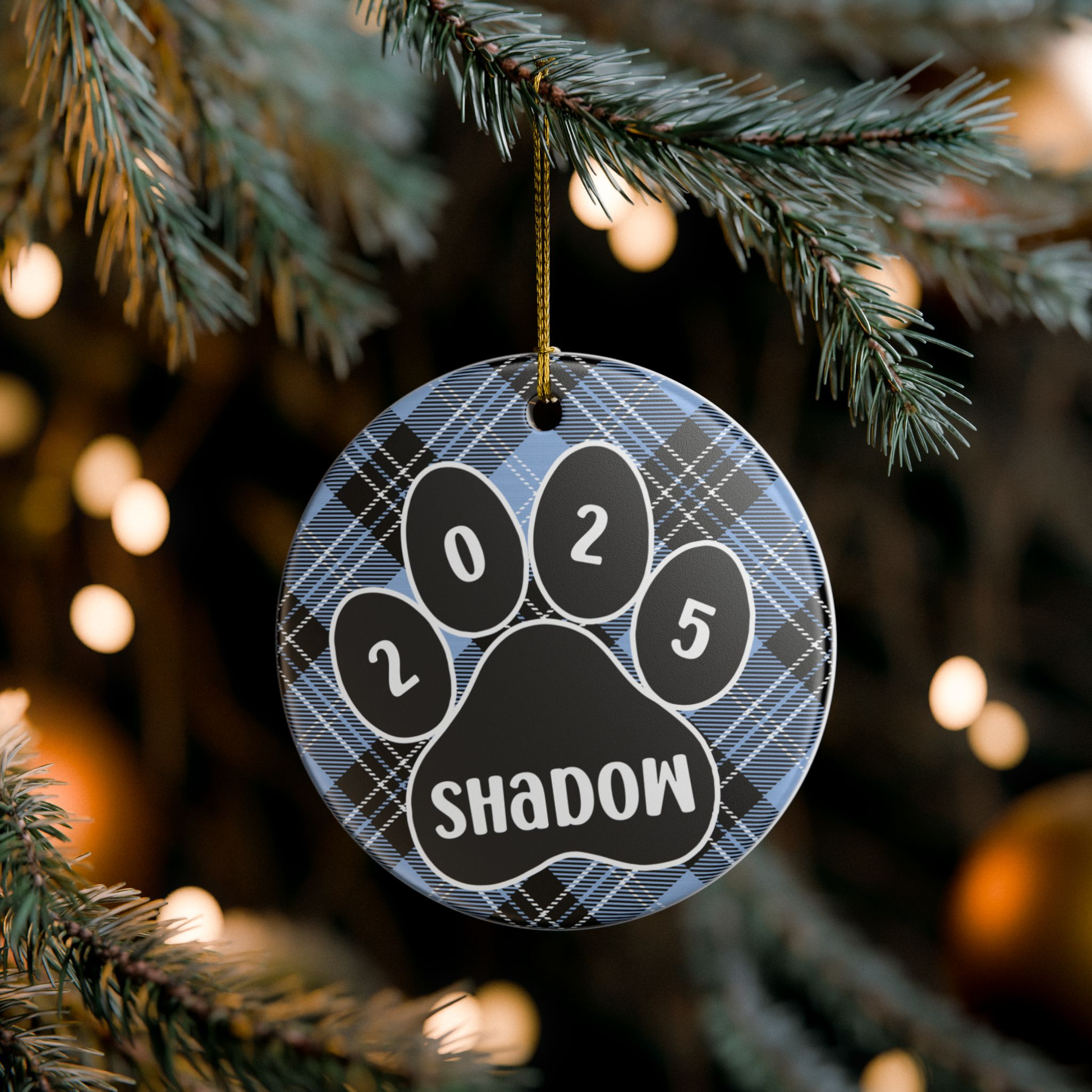 Custom Pet Name Ornament - Light Blue & Black Tartan 2025