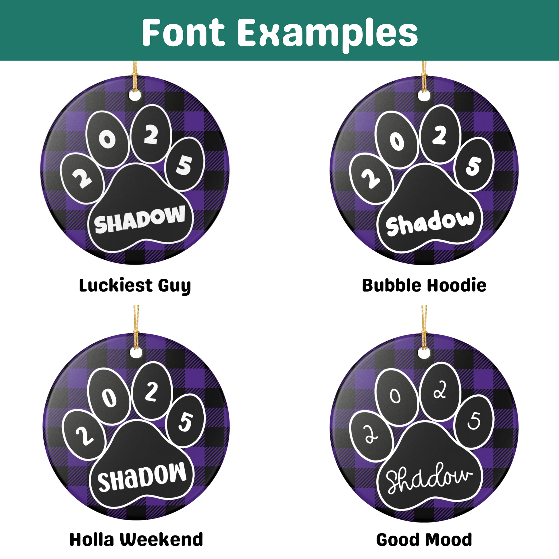 Custom Pet Name Ornament - Purple & Black Plaid 2025