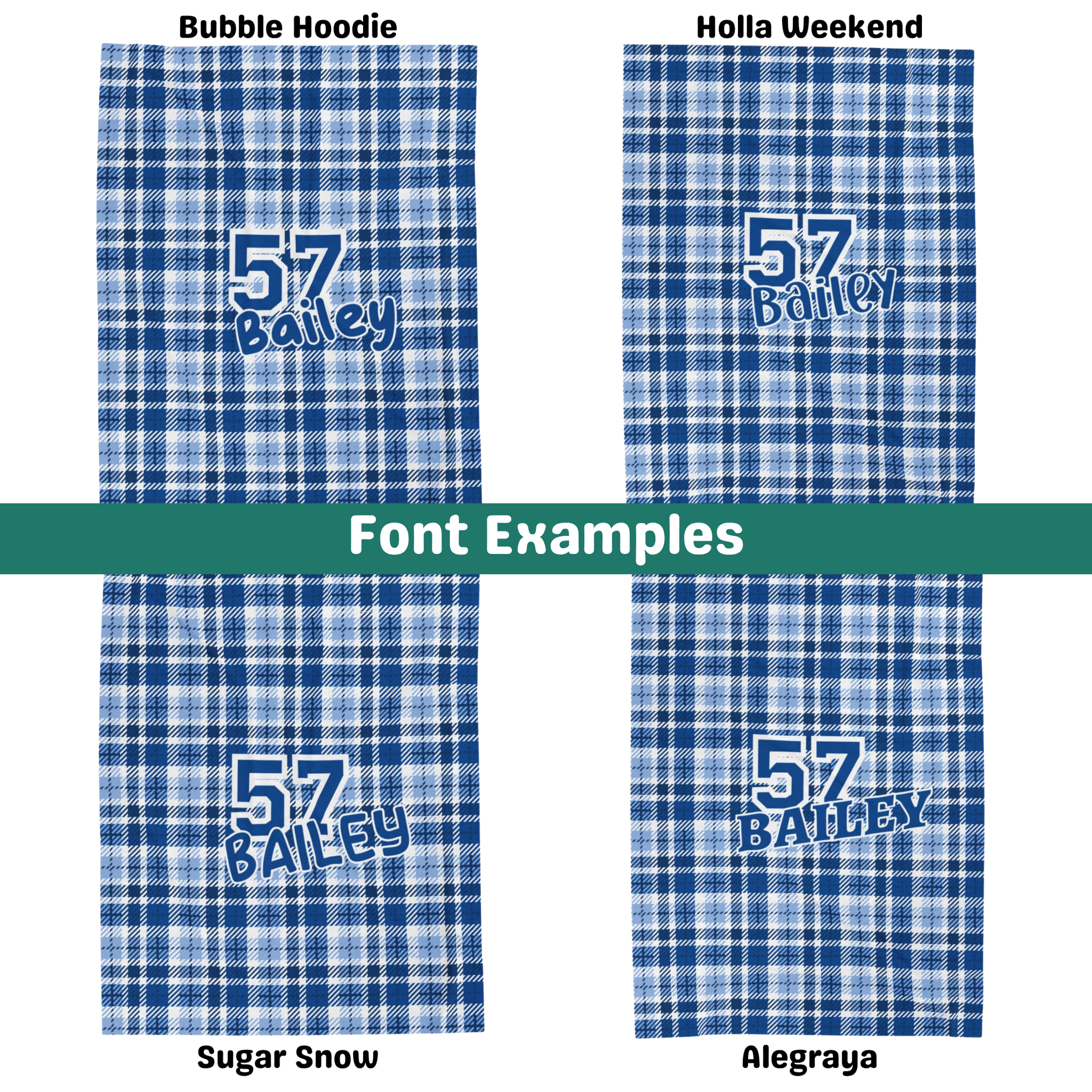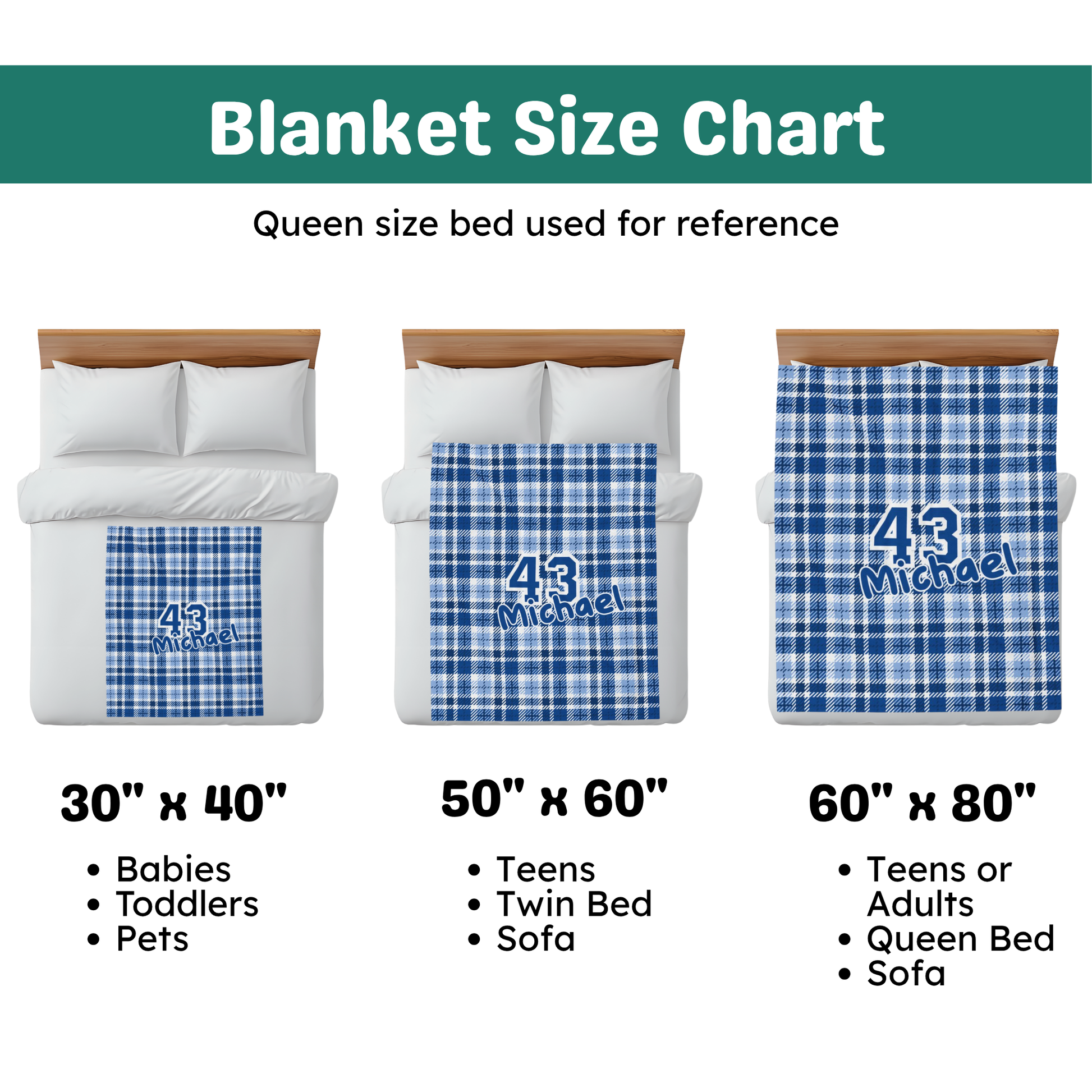 Create a custom cozy gift for your favorite athlete or sports fan with this velveteen plush blanket. It’s soft to touch and makes the perfect Christmas or birthday gift for all the children, teens and adults on your shopping list. The small size even makes a great pet blanket. Customize the blanket with desired team number and first name for a gift to be cherished for years to come. Available in three sizes: 30x40", 50x60", 60x80".