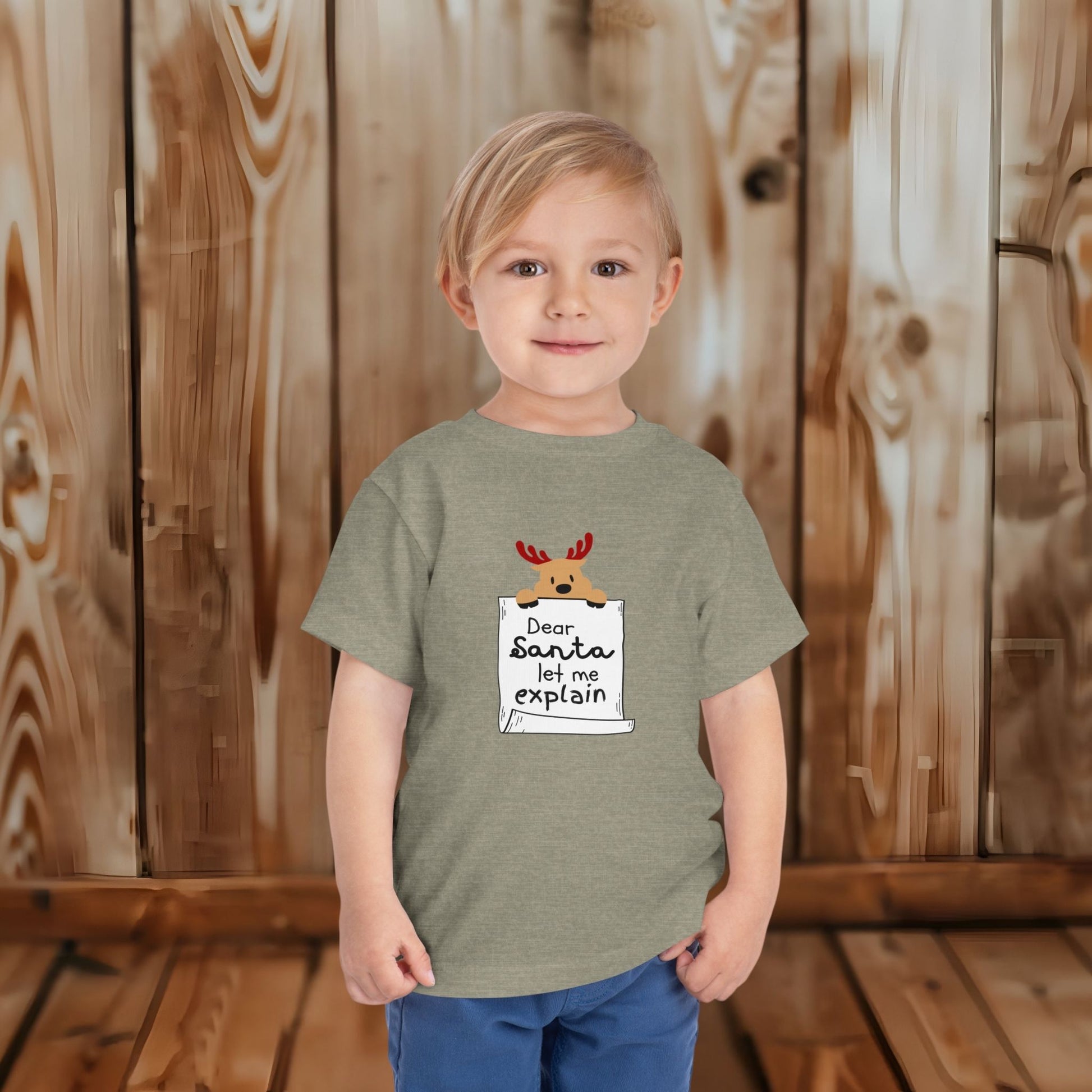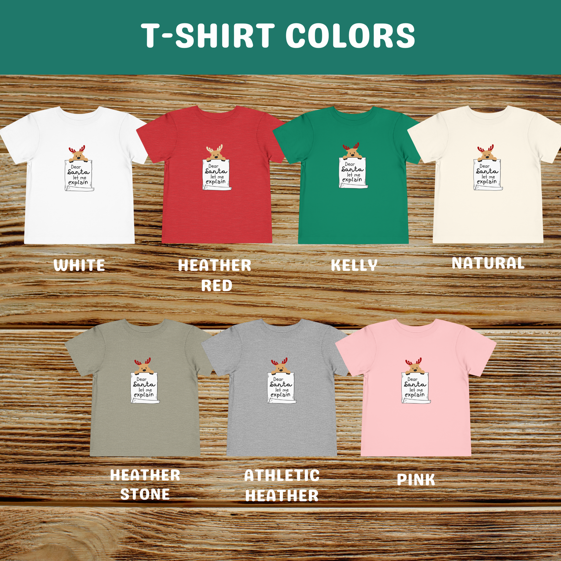 This humorous tee adds a playful vibe to everyday toddler shenanigans and holiday festivities. Crafted with comfort in mind, this tee is lightweight, allowing for comfort and easy movement during playtime or outings. It's made with high-quality materials and features a tear-away label for added comfort. This tee is a perfect gift for parents looking to add a bit of personality to their toddler's seasonal wardrobe.
