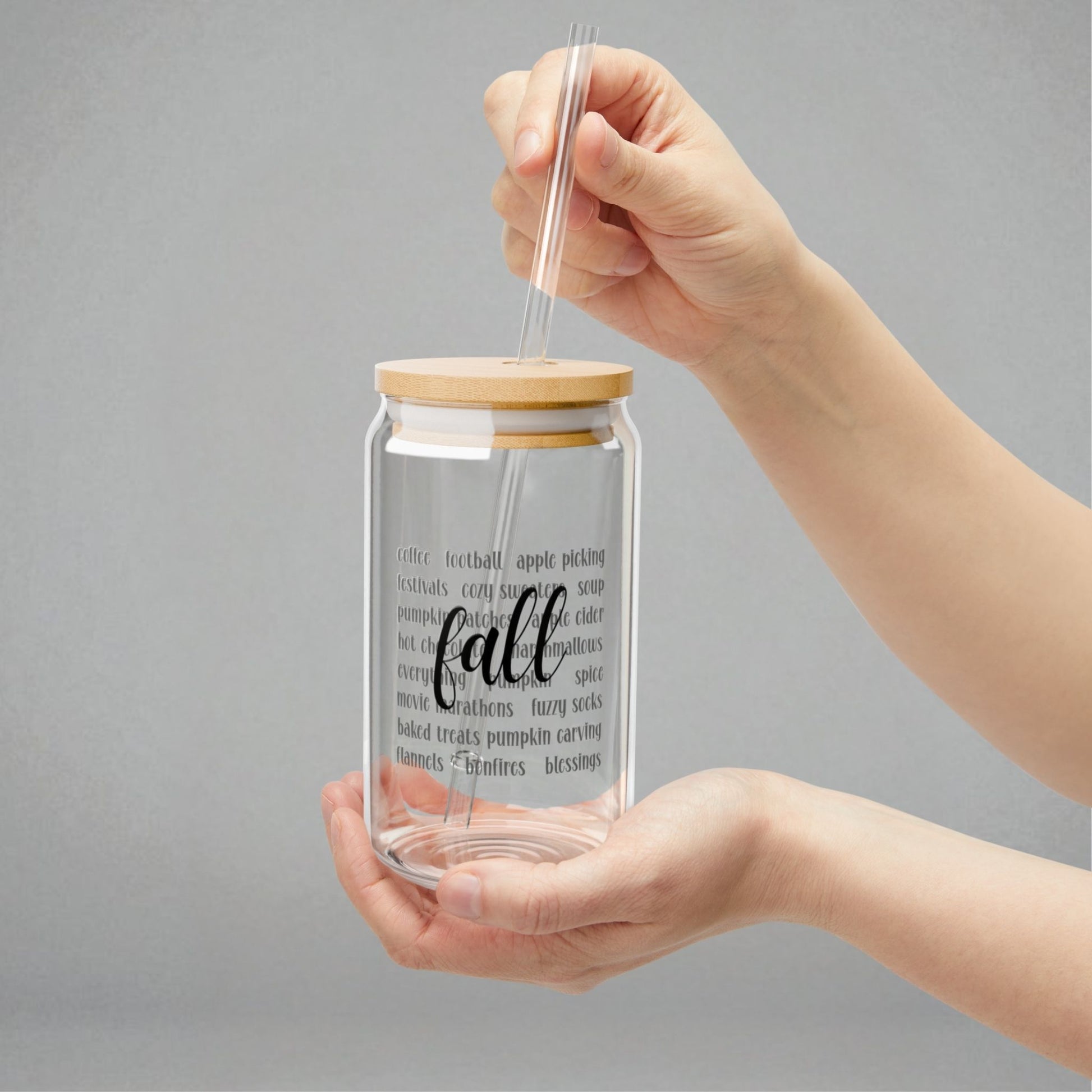 Add an autumn flair to your daily drink routine with this Fall sipper glass. Perfect for those who appreciate unique drinkware, this sipper is ideal for birthdays, Halloween celebrations, or simply as a fun addition to your morning ritual. Whether you're sipping a hot latte on a cozy morning at home, enjoying a refreshing iced tea while running errands, or drinking refreshing mocktails at a party, this glass can elevates every sip.