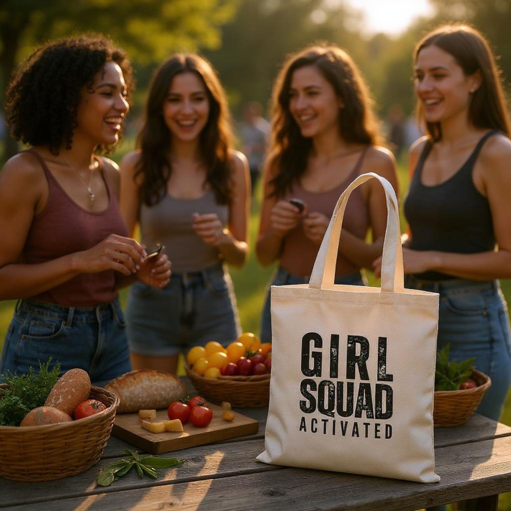 Lookout, girl time has been activated! Add a fun twist to your everyday haul with this cotton canvas tote bag. With its playful phrase and versatility, this tote brings a light-hearted spirit to your shopping trips, picnics, and daily errands. Whether you’re hitting the farmer’s market, going to the beach, or just running errands, this tote fits seamlessly into your lifestyle. It's ideal for birthday gifts and bachelorette parties.