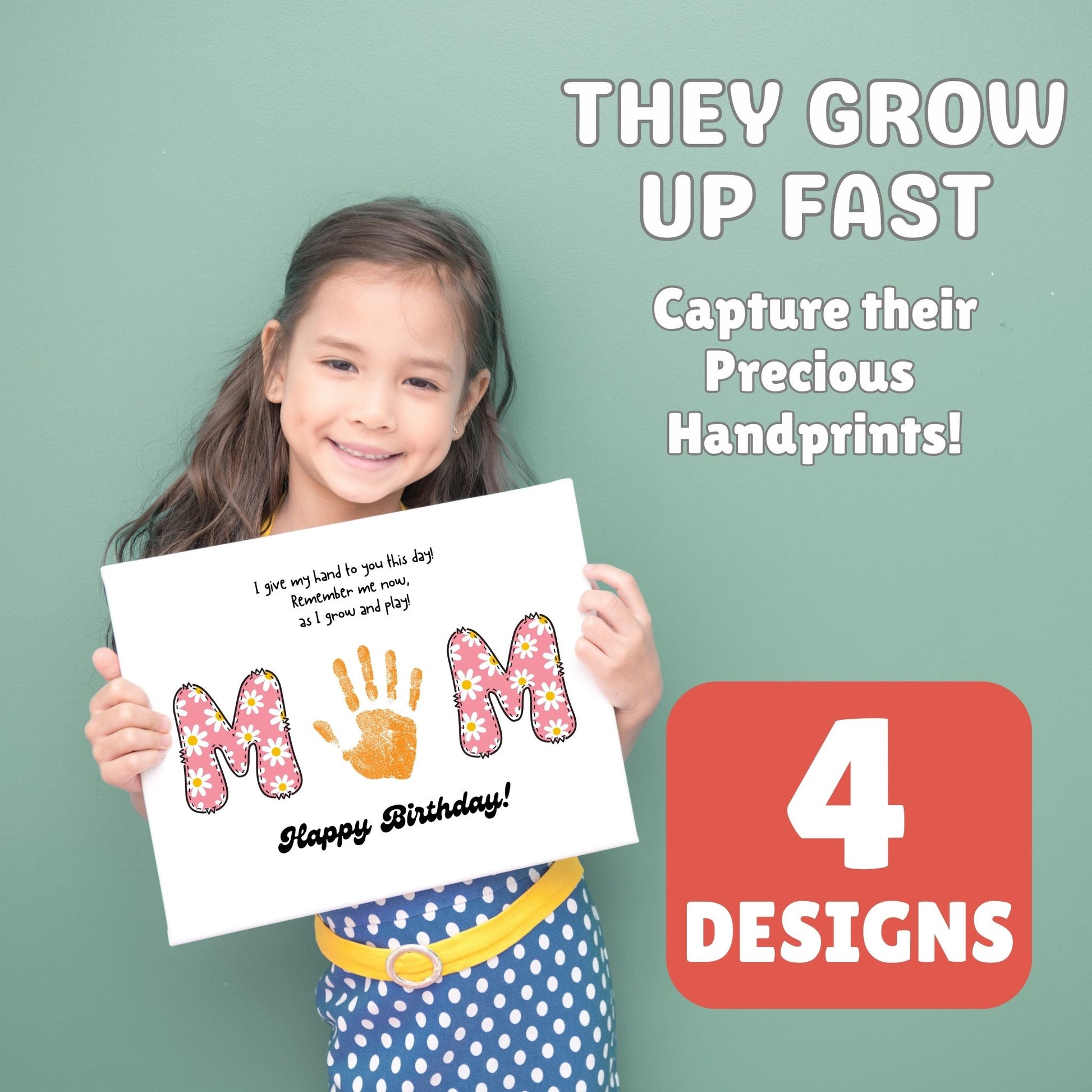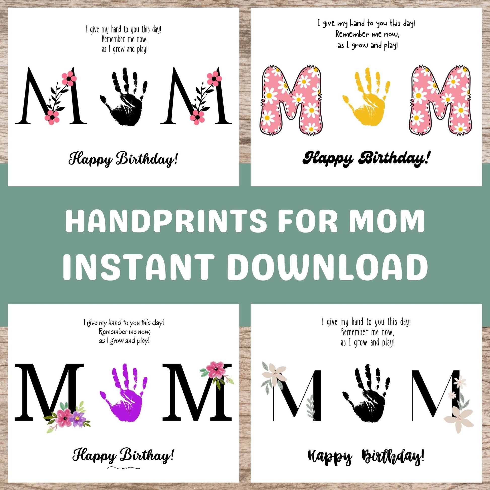Little ones can create a cherished keepsake for mom's birthday with these darling handprint printable designs. Create a special gift for new moms or have the mother and child do the project together, then frame and cherish for years to come.