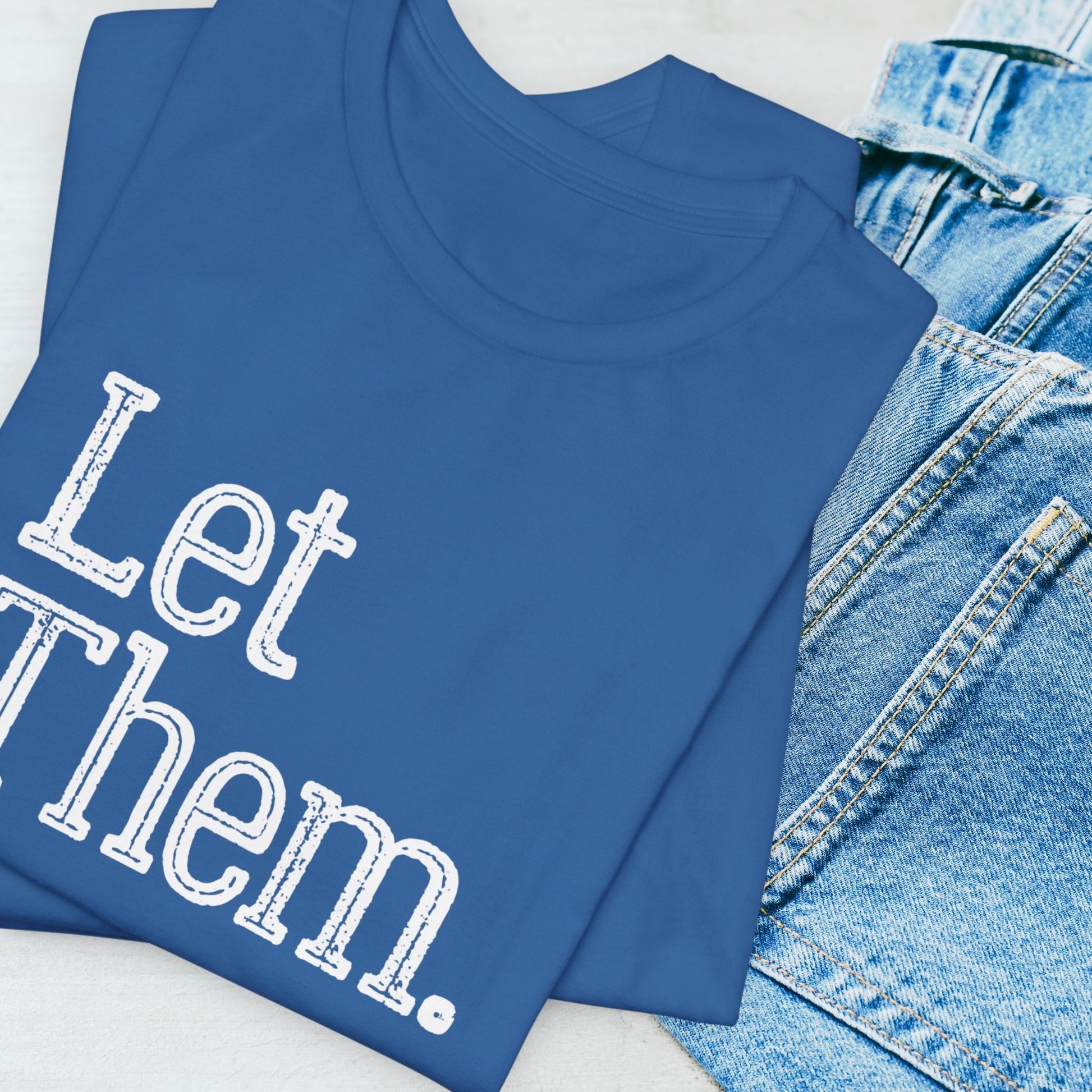 “Let Them.” A gentle reminder to let go of control and embrace peace. Whether you're moving through a healing journey, setting boundaries, or simply prioritizing your well-being, this minimalist quote tee is a powerful daily affirmation.
