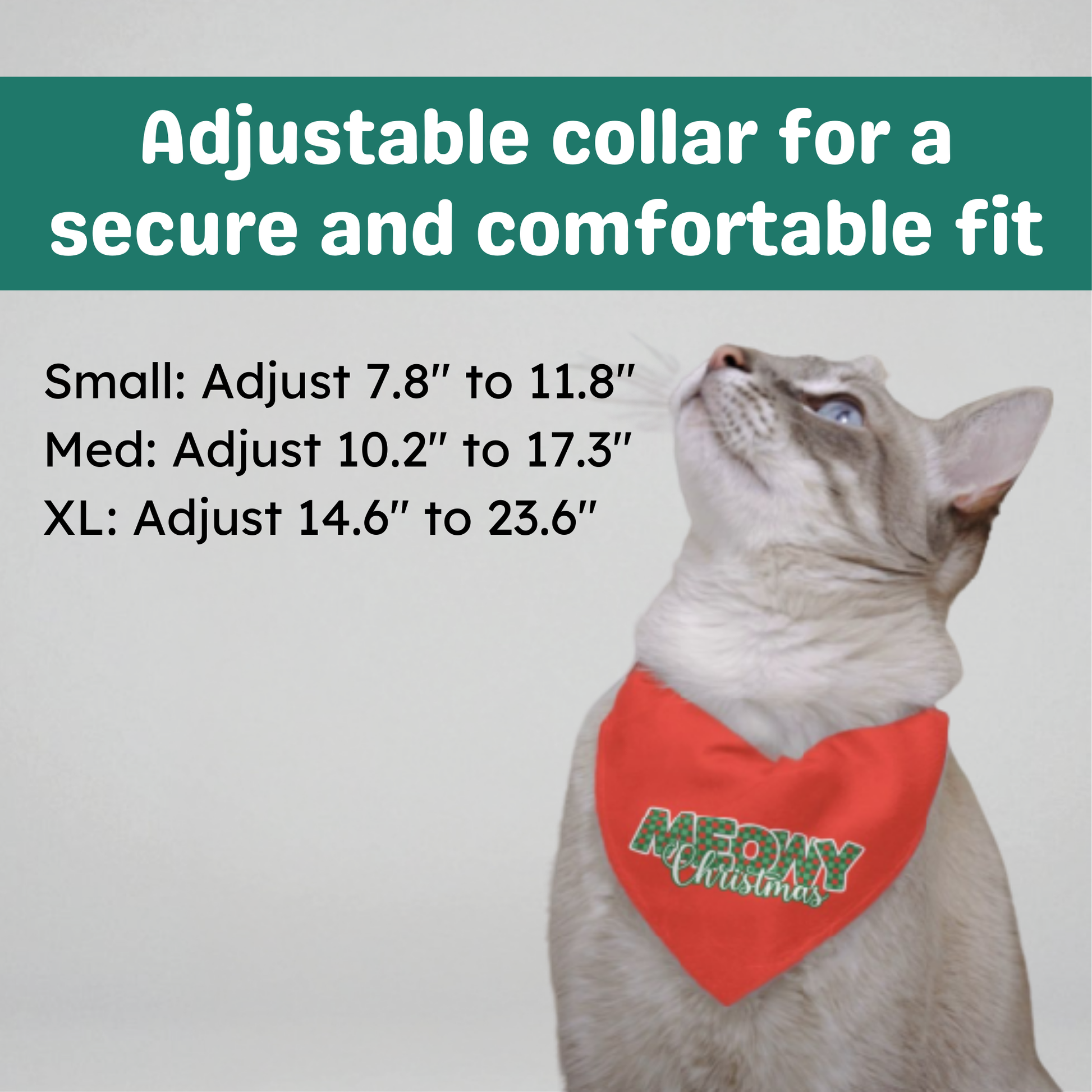 Elevate your cat's holiday style with this adorable clip-on pet bandana. Perfect for celebrating the Christmas season, it spreads joy and warmth with its festive holiday design. This bandana can transform your feline friend into the cutest companion during holiday festivities. Ideal for Christmas gatherings, seasonal photoshoots or every day during the holiday season, it brings a playful vibe to your cat's wardrobe. This versatile accessory is a delightful way for ca owners to express their love for their four-legged friends, making it the perfect gift for pet lovers.