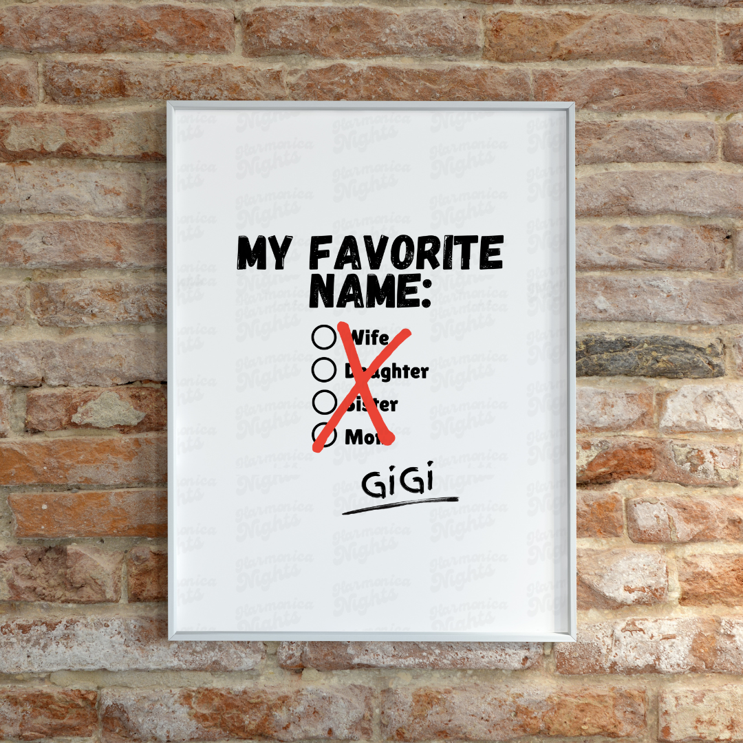 Three unique "My Favorite Name" designs for Mimi, Grandma and Gigi. Great for Mother’s Day gifts, grandma’s birthday, Grandparent’s Day gifts, each design comes in PNG, JPG and PDF formats