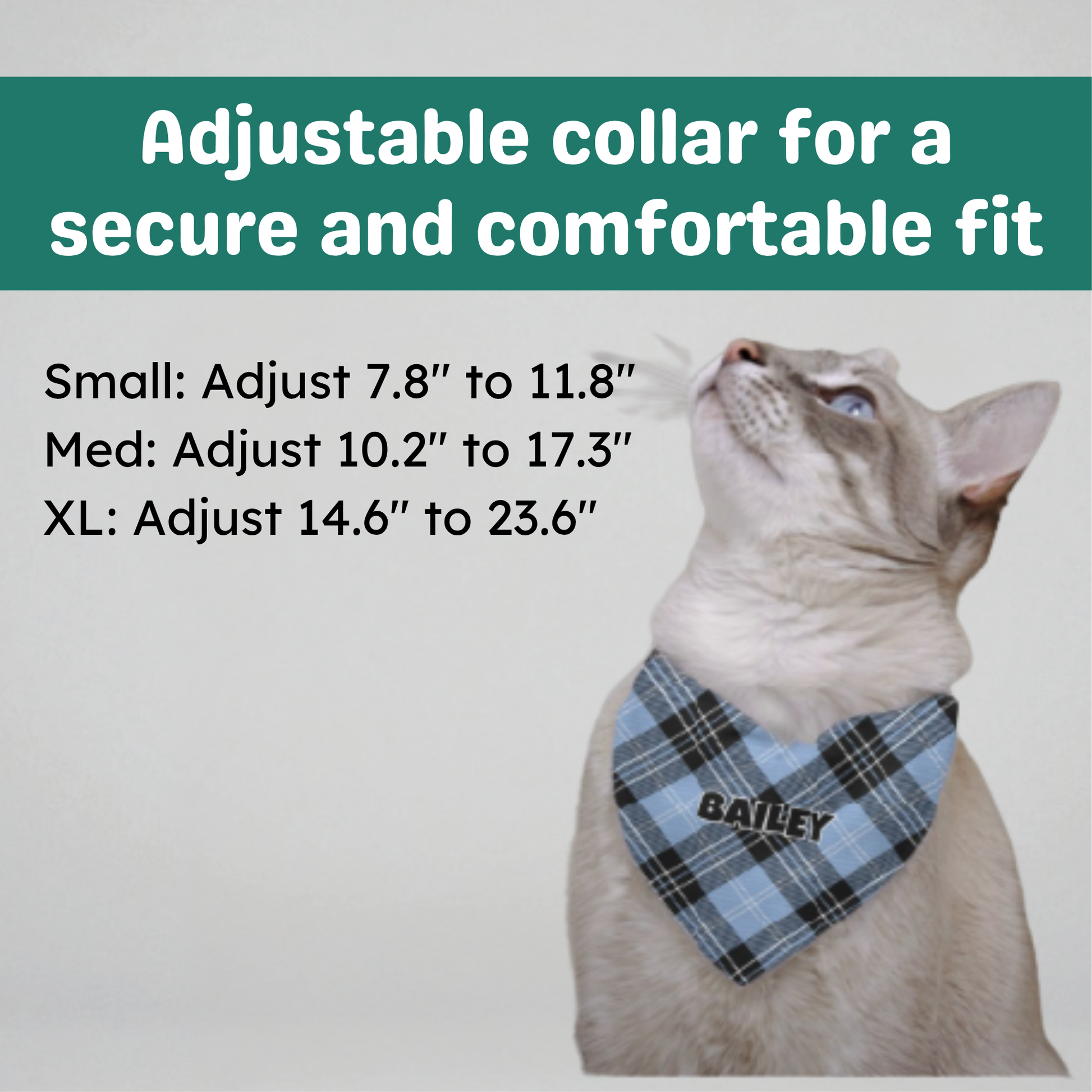 Personalized Clip-on Pet Bandana - Light Blue & Black Tartan