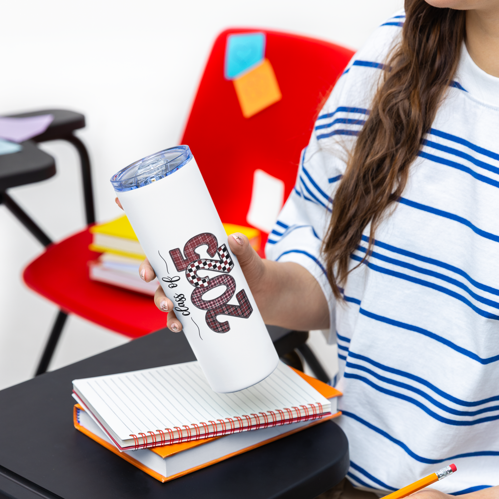 Skinny Tumbler with Straw - Crimson Red & Black 2025