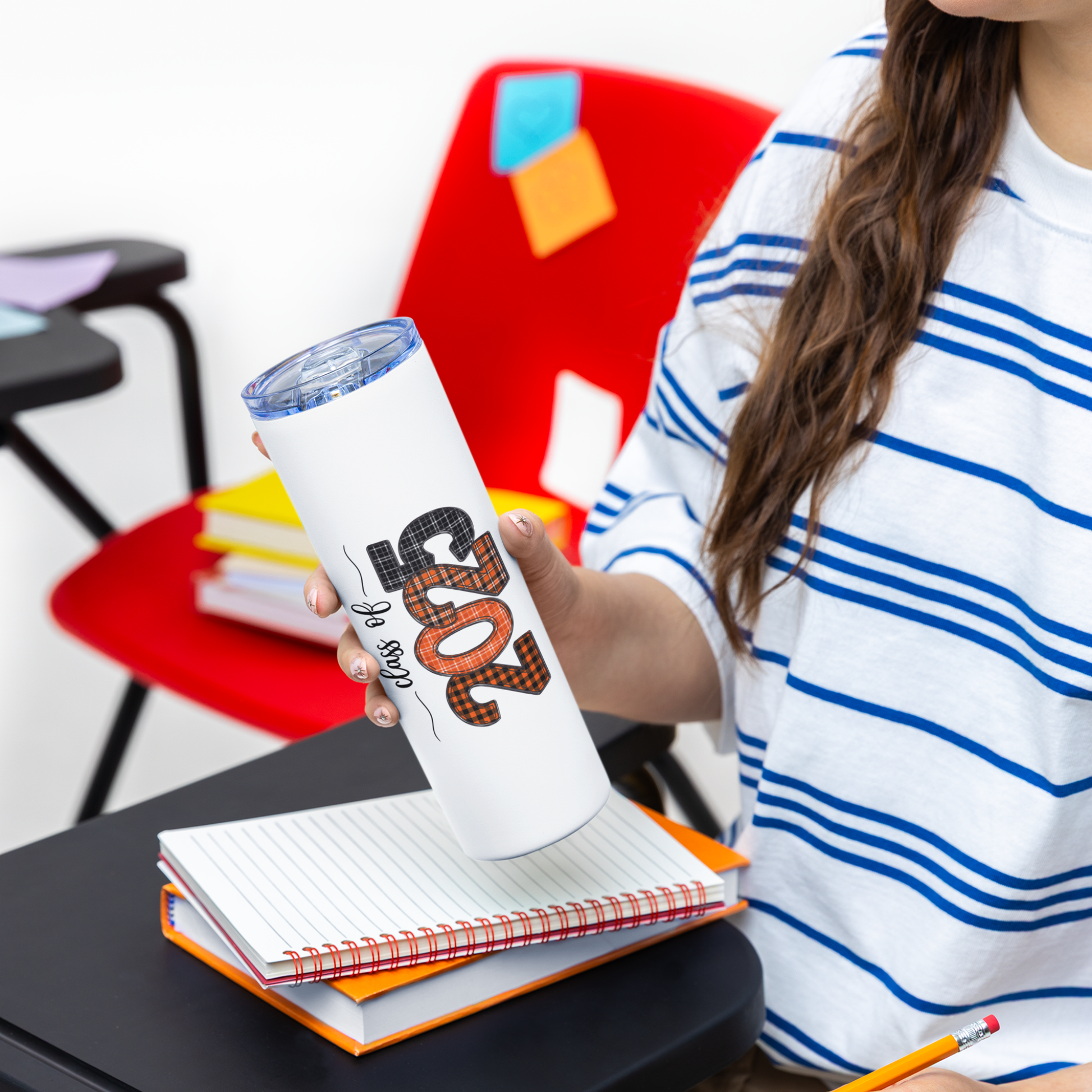 Skinny Tumbler with Straw - Orange & Black 2025