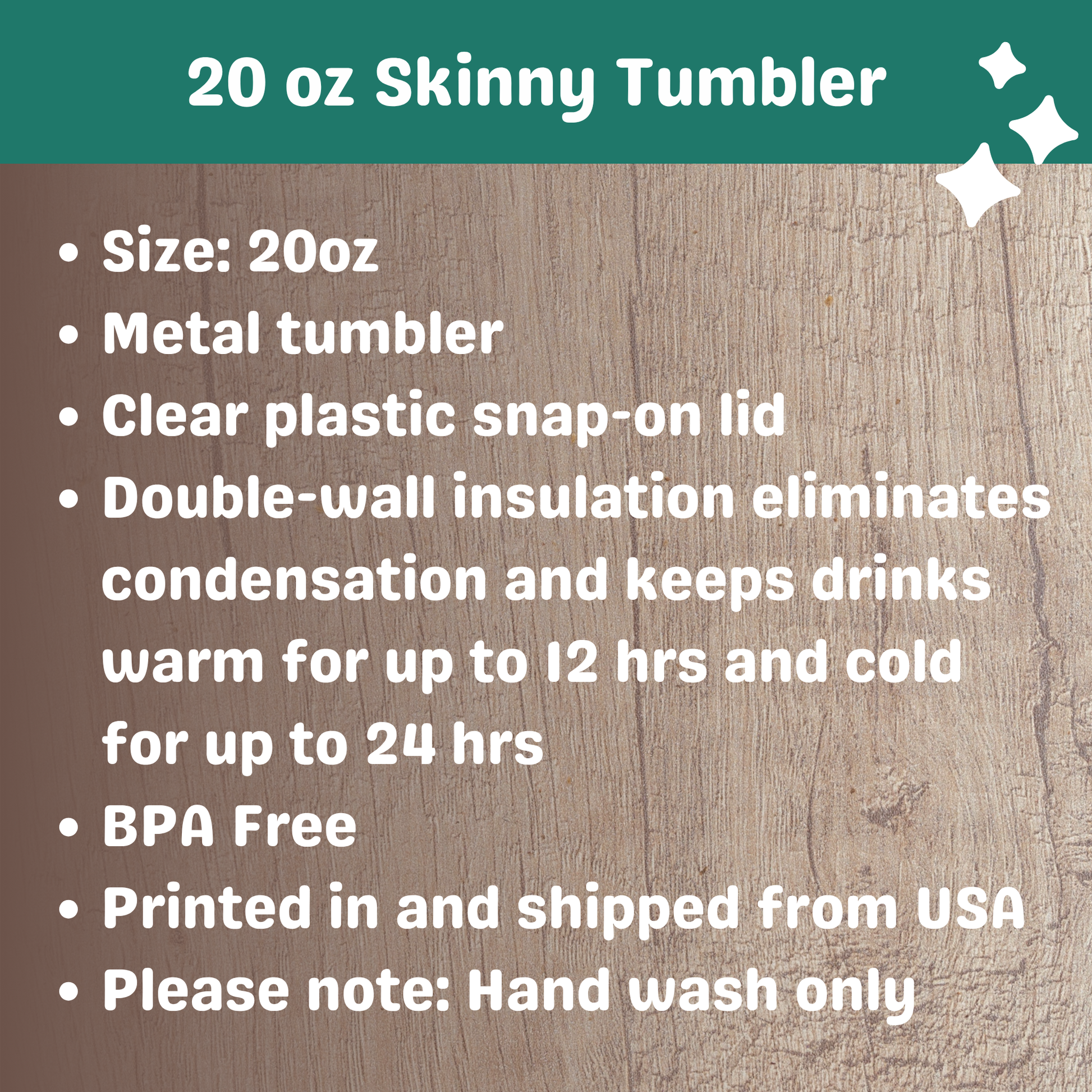 This personalized skinny tumbler keeps your drinks hot for 12 hours and cold for 24 hours, making it the perfect sipping companion all year round. With a 20oz capacity, these tumblers feature a slim design for effortless carrying on-the-go. The plastic lid is press-on style and has a color-matching straw. All components are BPA-free and non-toxic. Each tumbler has a matte UV-print finish.