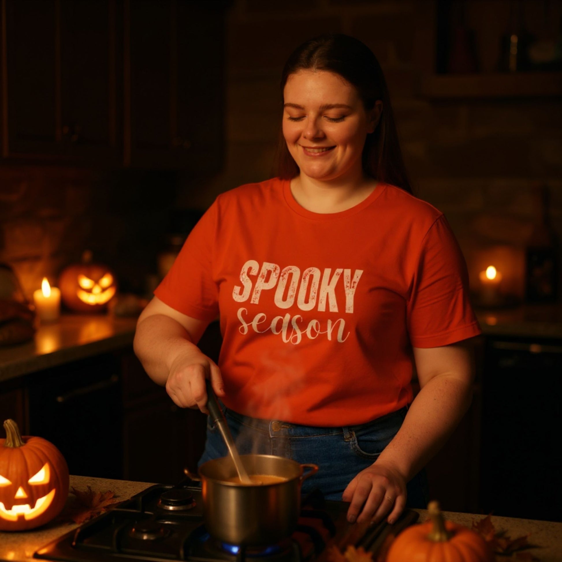 A t-shirt for fall and Halloween lovers! This tee encapsulates warmth and comfort, making it a perfect addition to your autumn wardrobe. It’s an excellent choice for anyone looking to express their love for for all things Halloween. This unisex t-shirt is short sleeve and is perfect gift for friends and all fellow autumn lovers.